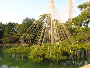 こんばんわ〜ご無沙汰しています。 今週になって暖かくて春のような毎日が続いている金沢です。 こう言う日は自分が花粉症だと言う事もなんのその・・・ 時間を見つけてはカメラを持って家を飛び出す状態です。^^ヾ 兼六園の梅が開花した・・・と言うニュースを見て出かけたのですが、まだまだチラホラでした。 やっぱり北陸は遅いのですね。 冬の名物兼六園の雪釣りも、もうそろそろ外される事でしょう。 兼六園で有名な唐崎の松の雪釣りです。