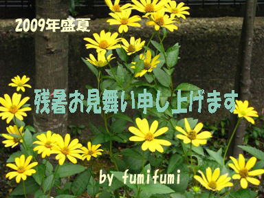 fumifumiさん。ご無沙汰です。 素敵な残暑見舞いありがとうございます。 こちらもホントに不穏な天候続きです。 一時気象庁では先週末から晴れて暑くなるなんていいなから、昨日からずっと雨で、暑さのほうは不快な蒸し暑さが続いています。 しかも、震度4の地震すら起こる始末。 なんかことしはおかしい天気ですね。 夏はまだまだこれからのようですが、まだ夏ばてはしていませんので、なんとかなりそうです。
