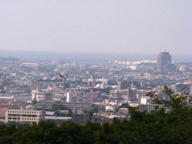もう1枚おまけ・・・ 金沢駅周辺です。 同じ所から望遠レンズで写しました。 左に並んでいる背の高いビルの後ろ辺りが駅になります。 金沢も随分変わりました。