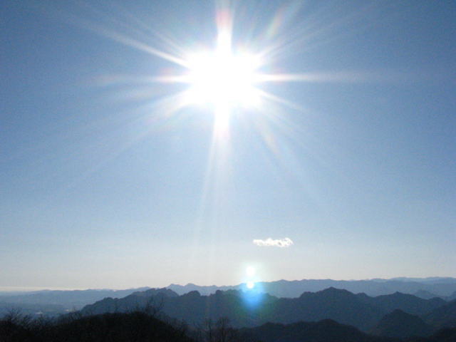旅行は15日に軽井沢をまわって帰ってきたのですが、生憎最後の日しかお天気に恵まれませんでした。残念! 晴天の中、軽井沢展望台からみえる群馬の山々です。 太陽は9時半ごろのです。 帰ってから風邪(新型インフルエンザでなくて良かったです)を引いて、でも仕事もあって・・・今日やっとゆっくりしています。 tanuponさんも気をつけてくださいね。